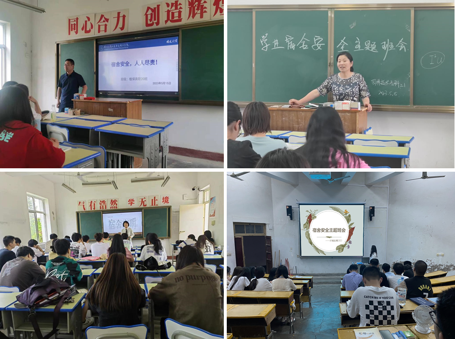 三、召开安全主题班会。为加强公寓用电、防火安全,切实拧紧安全阀,筑牢安全防线,消除安全隐患,守好校园安全底线。5月15日全校在校班级统一开展“安全、文明、卫生”主题班会。各班级通过班主任宣讲、学生讨论互动、案例警示等方式,有效地宣传了宿舍安全工作的重要性。