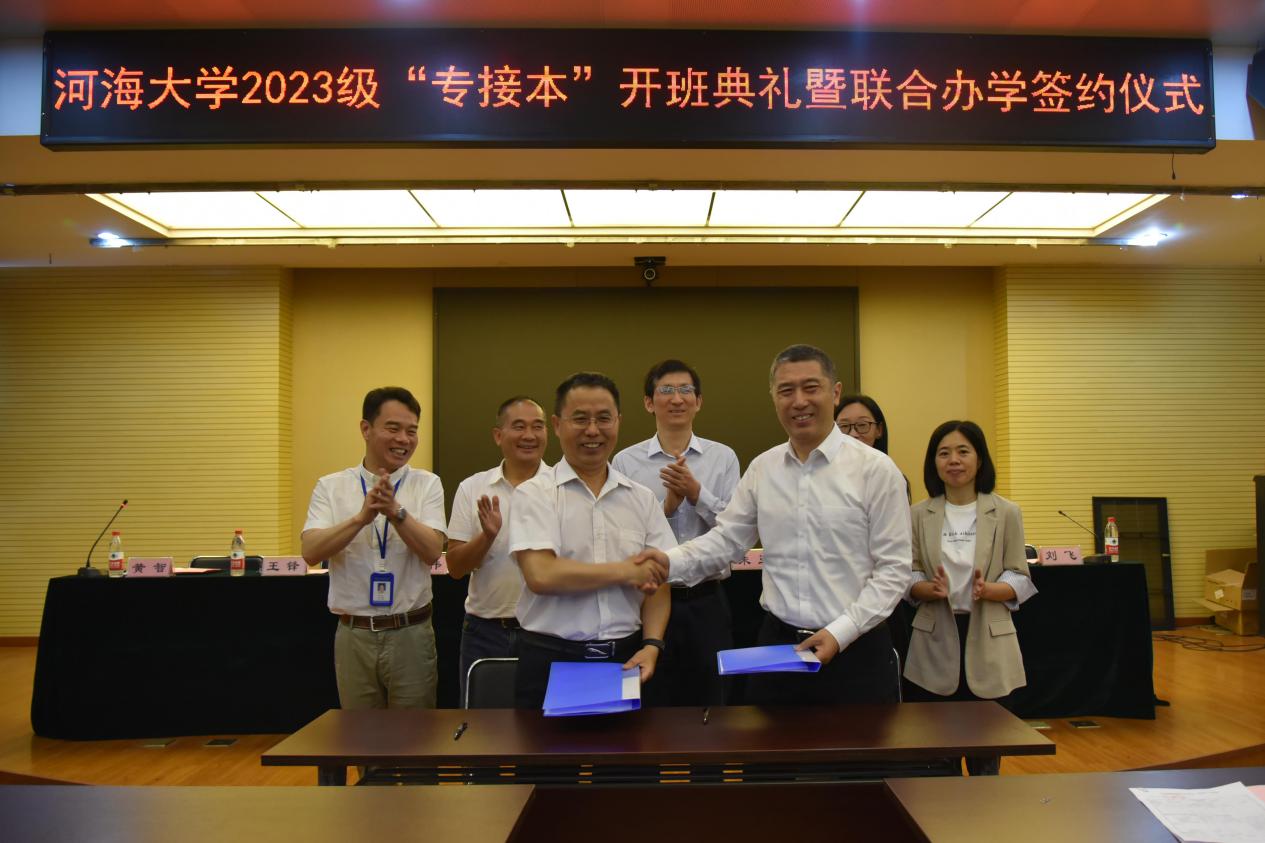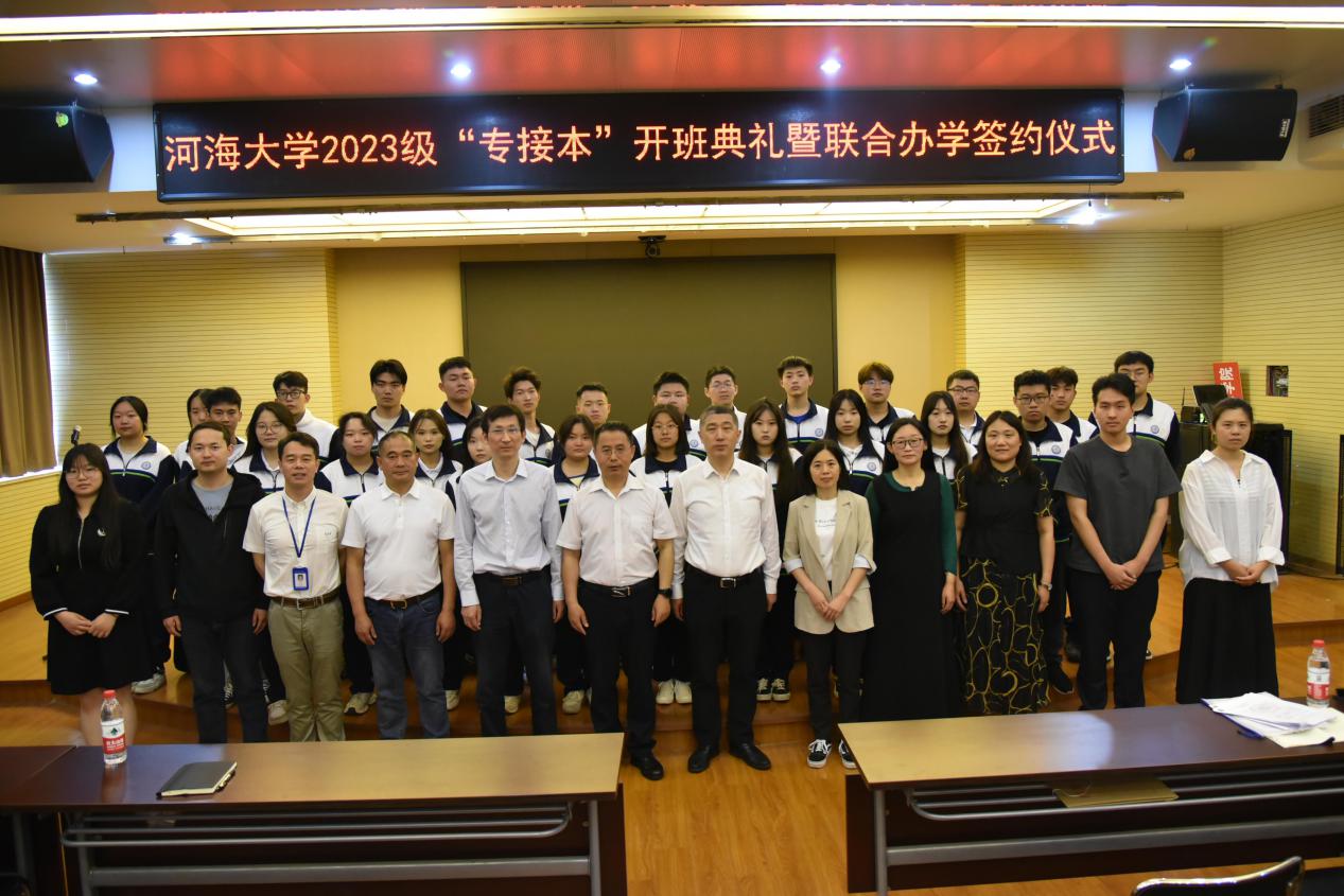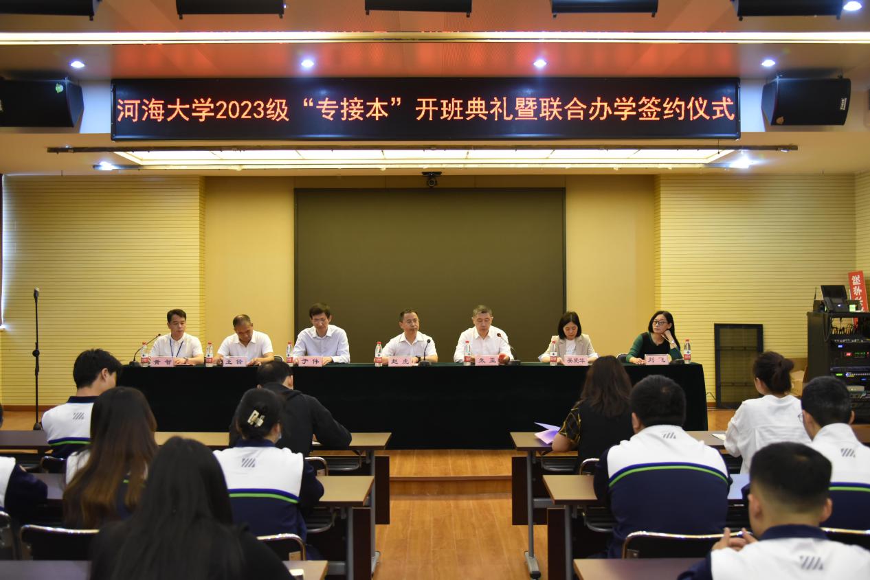 5月25日上午,我校2023级河海大学“专接本”开班典礼在学校图书馆辅楼一楼视频会议室隆重举行。我校党委委员、副校长赵虎,河海大学远程与教育学院院长朱亚、副院长于伟和招生办副主任吴爱华,学校继续教育学院副院长周保亚、生态环境学院党支部书记黄智、院长刘飞及相关领导老师和全体2023级专接本学生等参加了本次活动。开班典礼仪式由黄智主持。