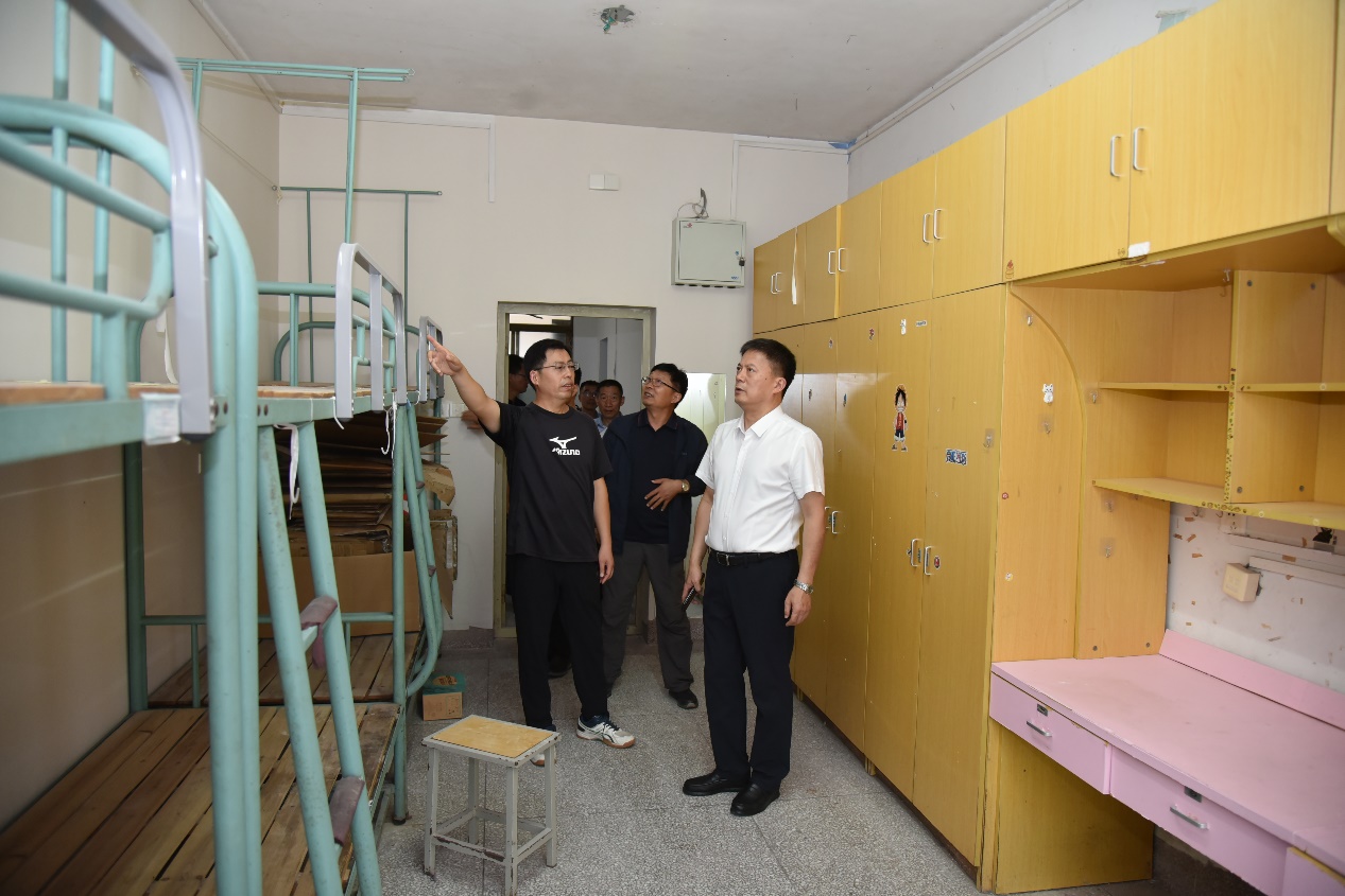 8月31日下午,张军校长、赵虎副校长、王安雷副校长带队在泉山校区检查开学准备工作。
