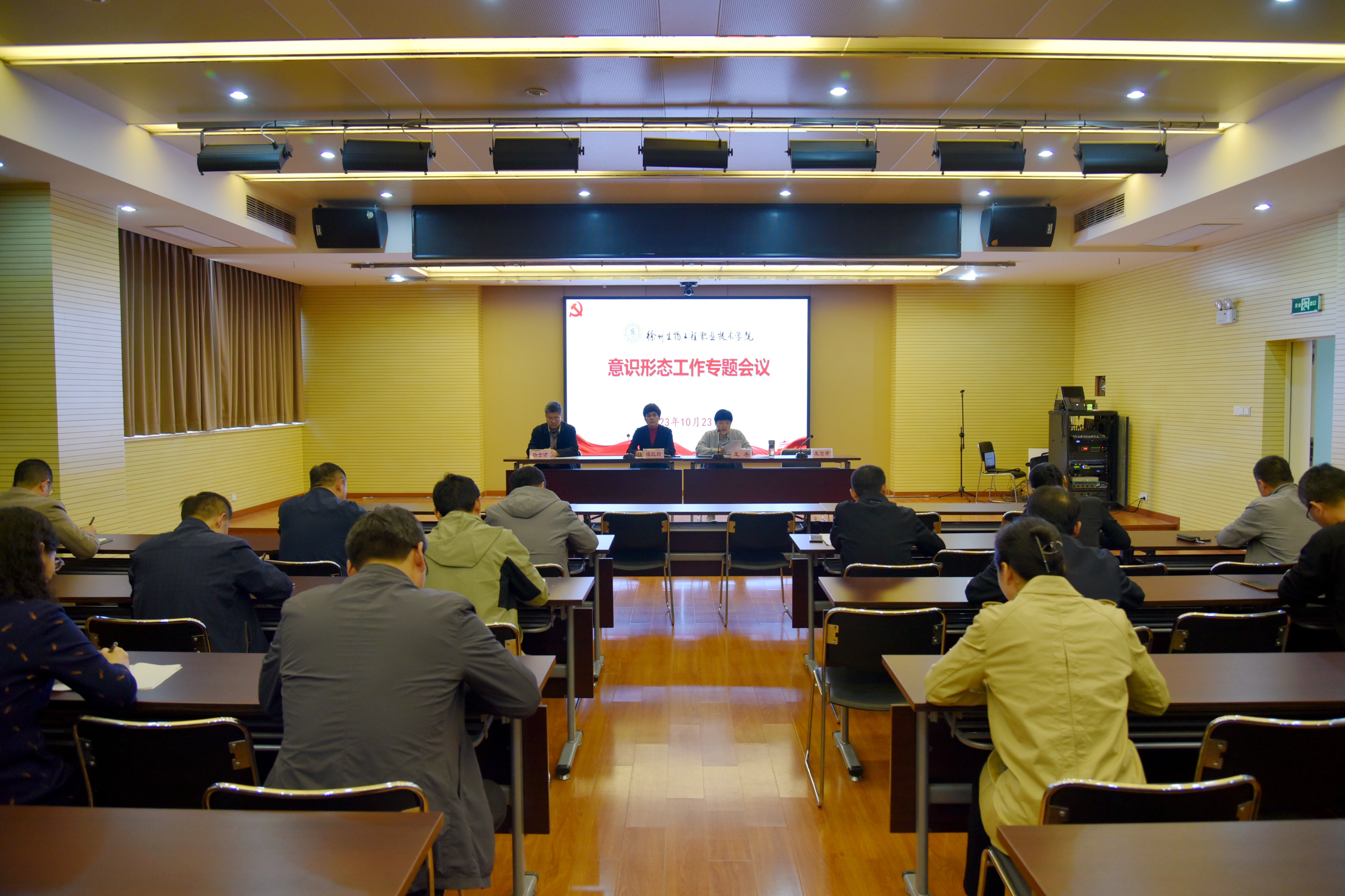 10月23日下午,我校召开意识形态工作专题会议,分析研判当前意识形态领域存在的风险隐患,对下一步工作进行部署安排。校党委副书记谭红玲出席会议并讲话,各二级党组织书记和有关部门负责同志参加会议,校党委委员、宣传部部长王冬主持会议。