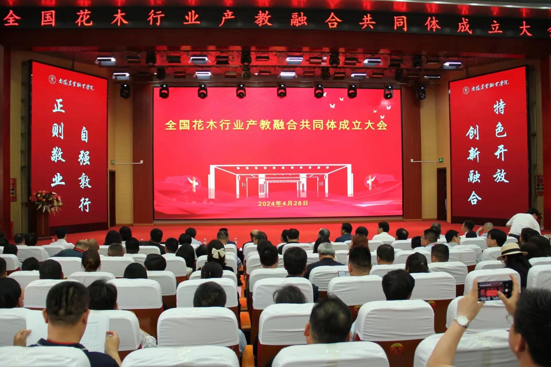 4月28日,全国花木行业产教融合共同体成立大会在南阳农业职业学院雪枫校区举行。我校当选为全国花木行业产教融合共同体副理事长单位。