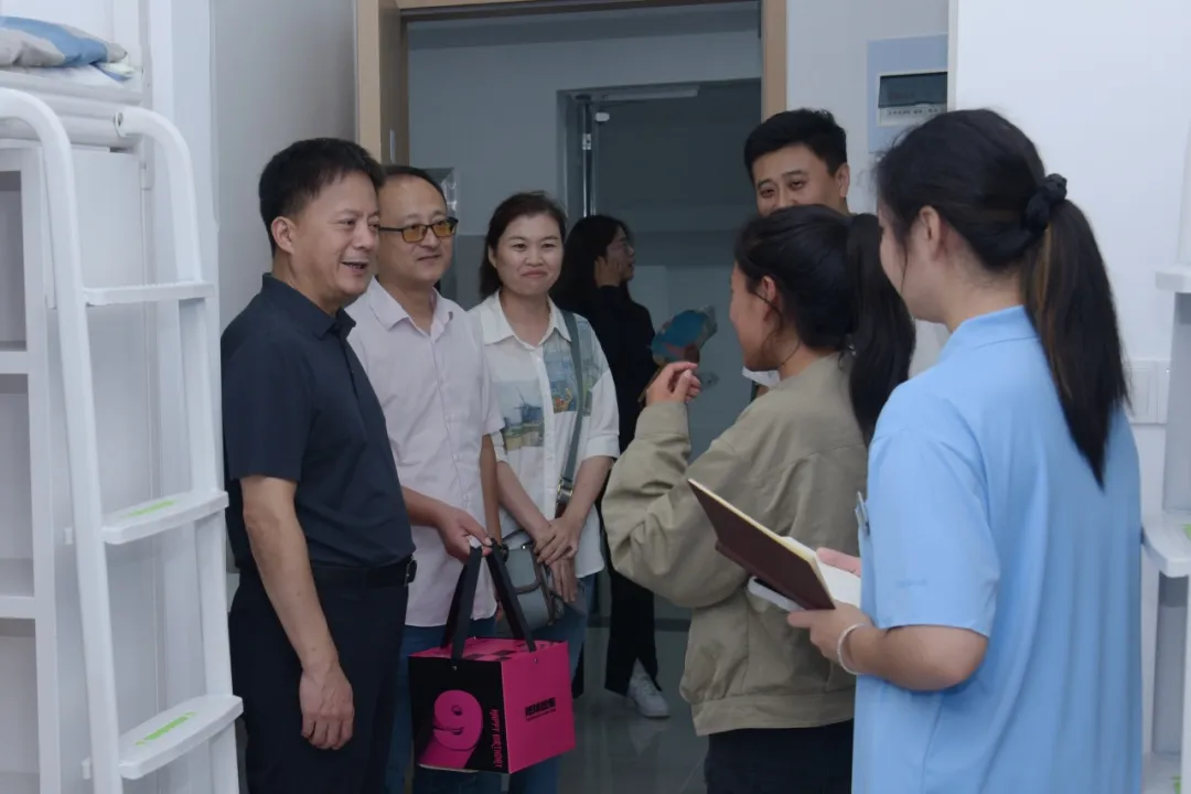 校领导亲临迎新现场指导工作,与新生及家长亲切交流,向迎新工作人员表示慰问。走进新生宿舍,看望慰问报到新生,为当天生日学生送上生日蛋糕和祝福,为家庭经济困难学生送上爱心礼包,勉励同学们培养独立自主的生活能力,精心规划自己的学习与生活,健康成长成才。
