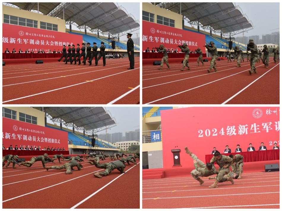 10月14日上午,2024级新生军训动员大会暨授旗仪式在泉山校区体育场隆重举行。校党委书记徐锋,党委副书记谭红玲,党委委员、副校长强承魁,党委委员、组织部部长严树超出席,承训部队教官、相关部门负责人、2024级新生辅导员、班主任以及全体新生参加,大会由学生工作处处长张明主持。