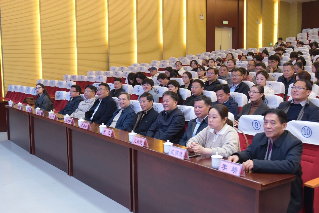11月20日下午,我校“江苏方志大讲堂”暨党委理论学习中心组(扩大)会在校图文信息中心三楼报告厅举行。本次大讲堂由江苏省地方志工作办公室主办,我校和徐州市史志办公室、徐州市两汉文化研究会承办。江苏省地方志工作办公室党组书记、主任左健伟,学校党委书记徐锋,校长张军,徐州市人大常委会原副主任、徐州市两汉文化研究会会长李君超,省地方志工作办公室研究室(信息处)副处长王魁诗,省方志馆副馆长沈萌溦,新华日报社徐州分社社长成岗,徐州市史志办公室党组书记、主任艾新建,徐州市云龙书院常务副院长李靖,省地方志办、市史志办相关负责人员、校党委中心组全体成员、各二级党组织全体委员及师生代表共两百余人参加活动。