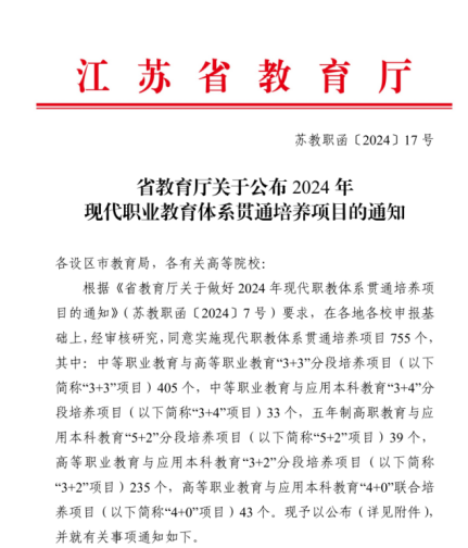 六、获批2024年江苏省现代职教体系贯通培养“3+2”项目3项,人才成长渠道进一步拓宽