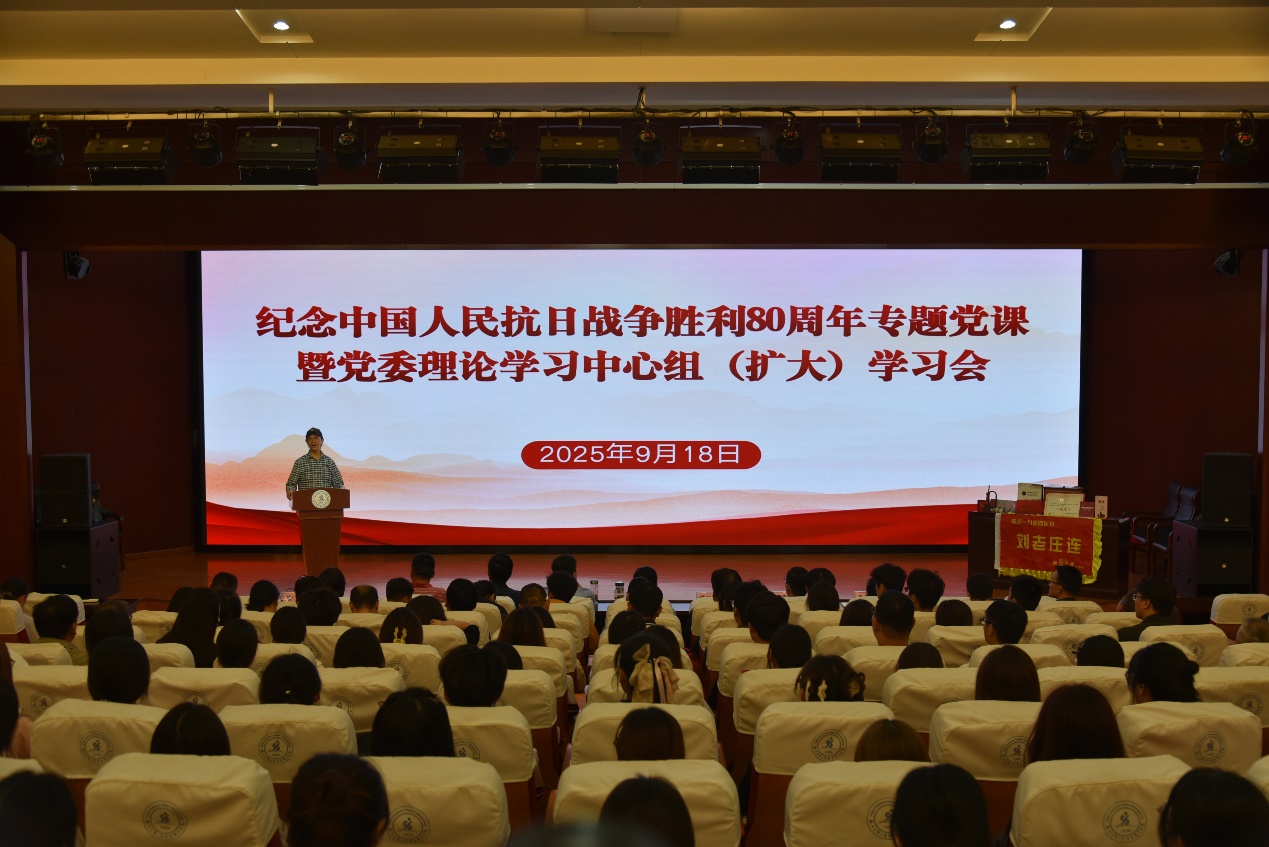 为深切缅怀革命先烈、传承红色基因,9月18日下午,我校举办纪念中国人民抗日战争胜利80周年专题党课暨党委理论学习中心组(扩大)学习会。国家一级编导、一级编剧徐铮教授受邀担任主讲嘉宾,校党委理论学习中心组成员、各党总支(直属党支部)委员、马克思主义学院教师、辅导员、学生代表等300余人参加。党委书记徐锋主持会议。