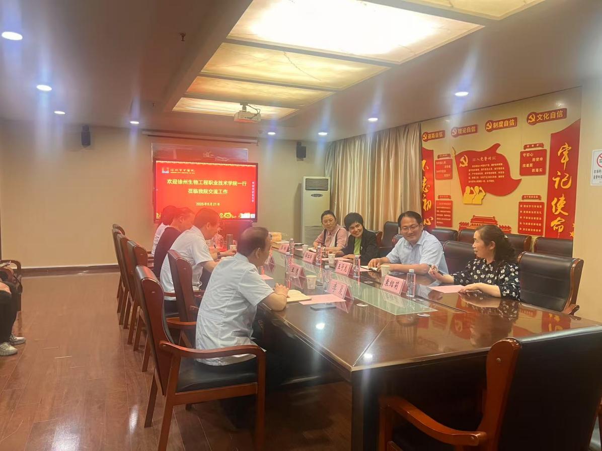 521日,校党委副书记谭红玲药品食品学院党总支书记王子龙、副院长蔡琳一行5人赴徐州市中医院访企拓岗,大力推进校院密切合作。市中医院院长牛勇、科教科主任李晨、药学部主任王慧、制剂室主任黄东智、办公室主任吴敏、公共卫生科主任蔡盈参加座谈。双方就在市中医院建立医药类人才实践教学基地等工作达成共识。