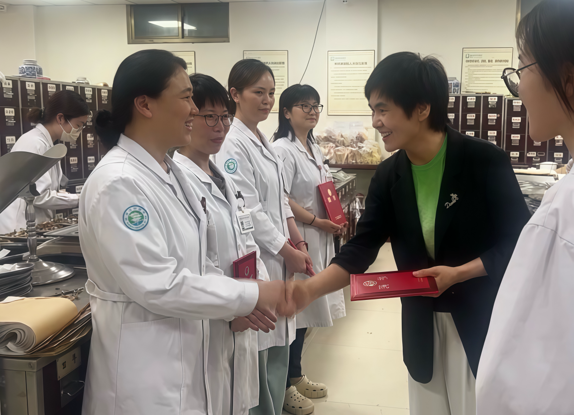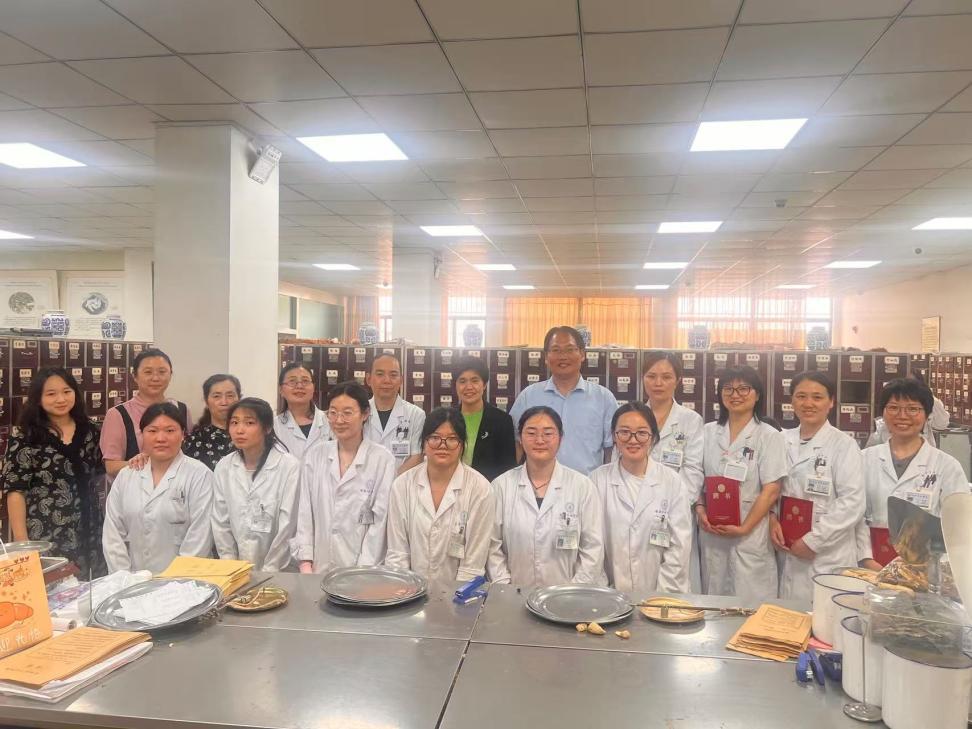 会后,谭红玲一行前往草药房、煎药室为市中医院22位实习指导老师颁发了聘书,亲切看望慰问了实习学生。谭红玲指出,中医院教学资源丰富,指导老师技能水平高超,勉励实习同学,要珍惜临床实践机会,将课堂理论与中医药传统技艺深度融合,严守药品质量管理规范,在传承创新中增强文化自信、夯实专业根基。实习学生表示,通过参与处方调剂、药材鉴别等实操,增强了守护人民健康的职业使命感,将苦学精炼,不断提高技能水平。